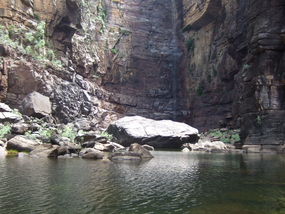 JIMJIM Fall(滝)までたどり着いて泳いだ。