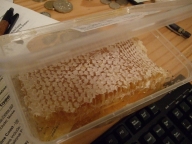 ハチミツなんだけど、(人口の)蜂の巣から取り出したまんまのを買った。