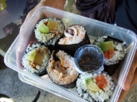 細まき、太巻きを作って(写真)、誘っていた友達とキャンパスでSUSHIランチ。