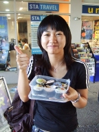 お昼にみんなと写真とるの忘れたけど、このときは寿司パックをゲットした友達の写真をとる。